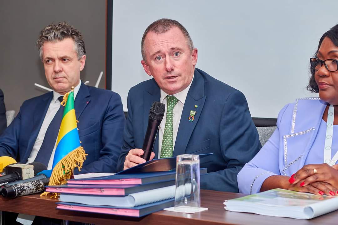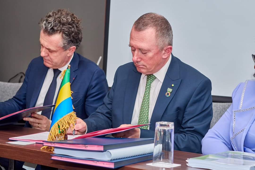 Signature d’un accord pour la surveillance environnementale de la côte Gabonaise entre les ministres Prof. Lee White, Christophe Bechu et M. Alexis Giordana PDG d’Air Environnement.
